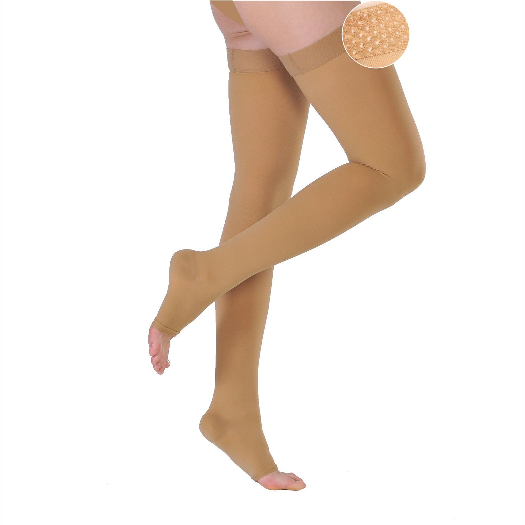 Надежная силиконовая резинка чулок без носка 2 класса компрессии хорошо предотвращает сползание изделия при ношении. Резинка на силиконовой основе предназначена для удержания чулка на бедре. Точечное нанесение силикона на резинку с гладким рисунком является универсальным и подходит для ношения изделия женщинам и мужчинам, не создавая дискомфорта. Высокая эластичность резинки предотвращает затруднение кровотока.
